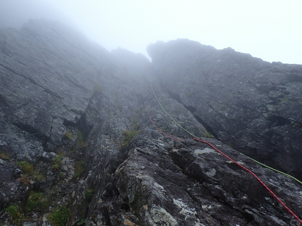 20170910_滝谷ドーム中央稜山行 投稿者: 過去文書2017/09/122020/05/07活動報告 20170910,11で滝谷ドーム中央稜をT村さん、K田君、F田で登って来ました。 初日に北穂まで上がりテント設営後、取付き点を確認し北穂の小屋でコーラで乾杯! 二日目にドーム中央稜登攀後、涸沢でカレーライス、徳沢でソフトクリームを食べて上高地まで下山のギュッと詰まった内容の山行でした。 今年は天候が安定しないので大変ですが、今回も何とかなって良かったです! 初日の涸沢は最高の景色!滝谷はガスガス!取付きを捜索中。北穂のテン場がBC1Pリード中のF田・・・ザイルの先に居るはずです!1Pの核心を超えたT村さん2PをリードするK田君・・・かすかに見えます!4Pリード中のT村さん・・・上部に白いヘルメットが見えます?