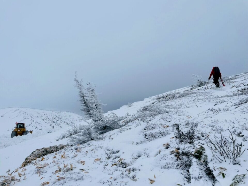 坊主山の側面は除雪作業中。
