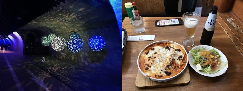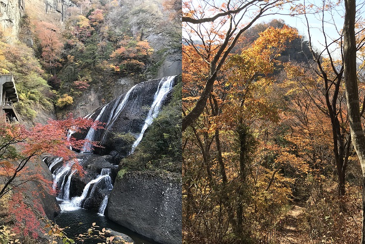 本日行く袋田の滝も混雑が予想されるので、予定より早く出発。しかし、駐車場に着くとほとんど客がおらず拍子抜け。滝へ向かうトンネルが8時に開場なのでそれまで仮眠。開場前には観光客が現れ始める。トンネル内はライトアップ等されており、写真映えを意識している。トンネルを抜けると巨大な袋田の滝が現れる。紅葉とのコントラストが非常に素晴らしい!