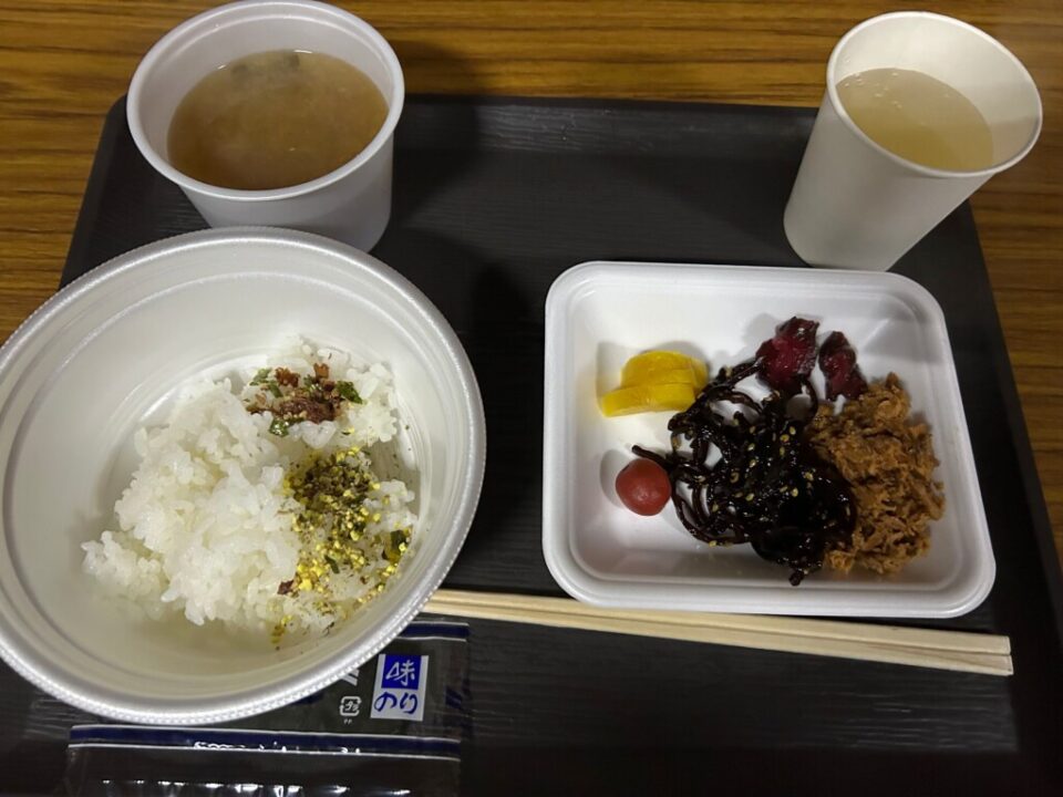 朝ごはん。質素にみえるけどご飯に合う付け合わせばかりで結局大盛りおかわりしました。