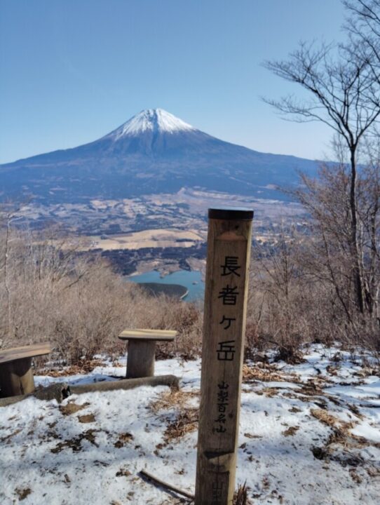 長者ヶ岳の稜線に出ると富士山が目の前に現れた。山頂の気温は0度、一人休憩していた。