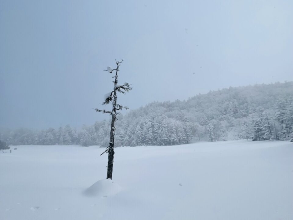 初めてのスノーシューハイクだったので、歩き始めるまではまともに歩けるのか、寒さに耐えられるのかといった不安ばかりが大きかったのですが、みなさんのおかげで素晴らしい体験をすることができました。ノートレースを歩く場面もけっこうあったので、先頭を歩くプチラッセル体験もさせていただきました。スノーシューとスキーの両方の得意不得意も知ることができました。天気予報がよくなかったので、3つもの計画を立ててくださり、歩きながらも状況判断を適切にして導いてくださったK田さんご夫妻、何も知らない私に声をかけてくれたK藤さん、H川さん、本当にありがとうございました。