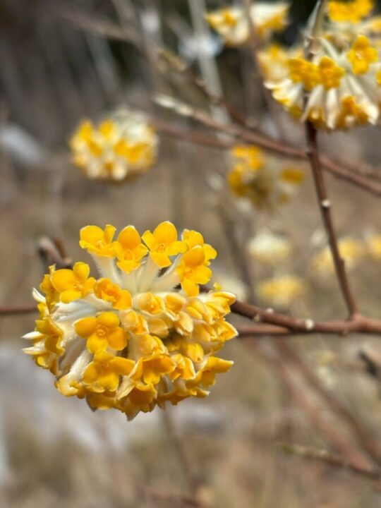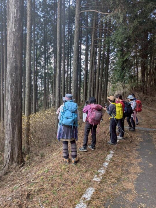 唯一の眺望ポイントに出るとミツマタが咲き乱れており、女性陣のテンションMAX、撮影会が始まりました。まずは浅間山まで行き、戻って眺望ポイントで昼食。その後、大森山を登り下山。