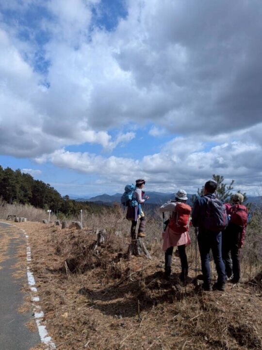 | 12月34日 | 集合地(6:30) =1:00 =道の駅鳳来三河三石(トイレ) (7:30,7:40)=0:10=大森山登山口(285m/7:50,8:00)ー1:50ー城山(657m/9:50)ー1:20-弓張山(679m/11:10)ー0:15ー浅間山(644m/11:25)-弓張山(11:50,12:20)ー2:20ー大森山(14:40)- 大森山登山口()-集合地 |