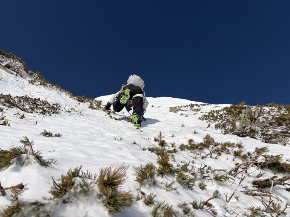 最後のG0の頭への斜面は一番キツかっただろう。時々凍っておりしっかりと爪を刺した。