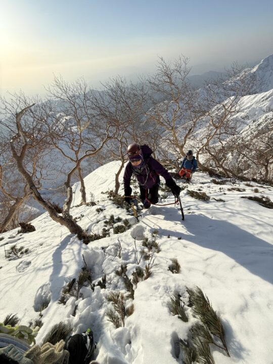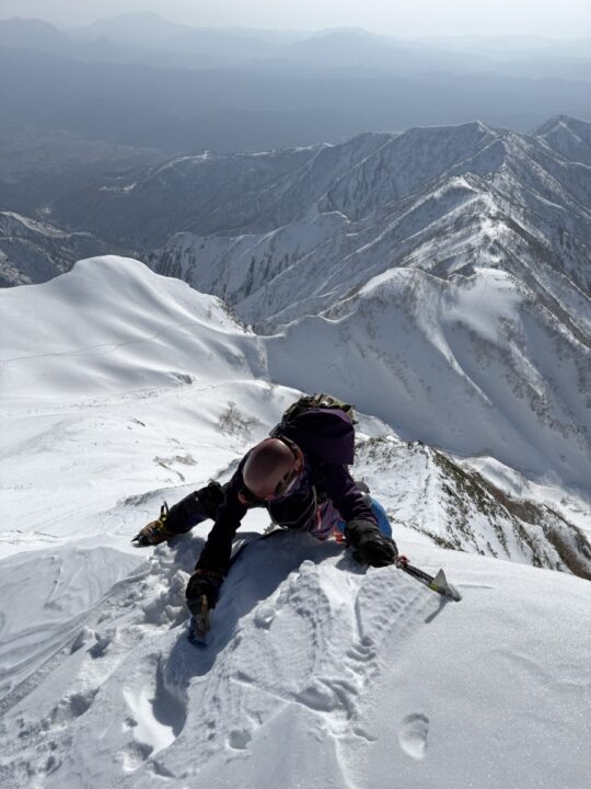 その後は小さな雪庇を越えるのだが、アックスの使い方が上手くいかず、まだ技術が足りないなと実感した。