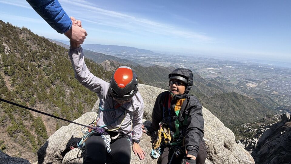 快晴だったが風が強くシェルが無いと過ごせない位だった。登攀中ヒヤッとする突風が吹く事も。それでも久しぶりの前尾根を終始リードのYちゃん流石です!私は心が微妙だったけど、最後の兎岩のお陰で楽しく登る事が出来て一安心。英語と日本語と時々フランス語が入り混じりながら、とても楽しい1日となった。さぁ今年の目標を達成すべく頑張ろうかな!