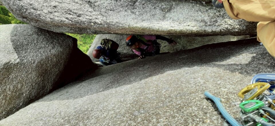 P2ヤグラは後続が待ってるので空身で登り歩いて降りた。チョックストーンはハンドジャムで直登出来ると以前聞いたので、せっかくならと試したが出来なかった。でもジャムを意識したら今までより簡単に登れた気がする。